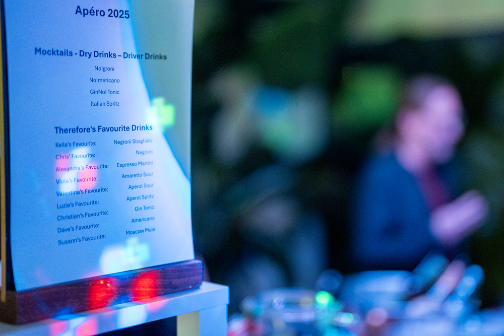 Ein klarer Kopf war dann beim gar nicht so trivialen Quiz gefragt. Unter dem Motto «Wie gut kennst du Therefore?» konnten die Anwesenden ihr Agentur-Wissen testen. Die richtigen Antworten fand man auf der 8 Meter langen Whitewall, im Sitzungszimmer oder im Gespräch mit den Thereforianern.