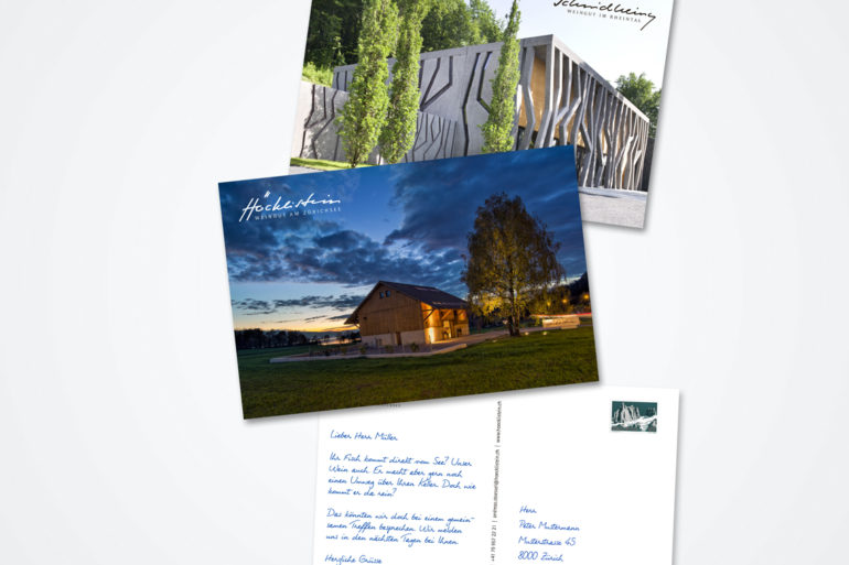 Direct-Mailing für die Weingüter Schmidheiny und Höcklistein Dank Postkarte auf die Weinkarte? Das ist das Ziel der Familie Schmidheiny, die in Rapperswil und in Heerbrugg Weingüter unterhält. Die Weine können in ausgewählten Restaurants bestellt oder im Onlineshop und direkt vor Ort gekauft werden. Nun sollen sie bei weiteren Gastronomiebetrieben in der Region auf der Karte stehen. Um mit den Betreibern ins Gespräch zu kommen, wandten sich die Weinexperten an die Kommunikationsexperten von Therefore. Für die...
