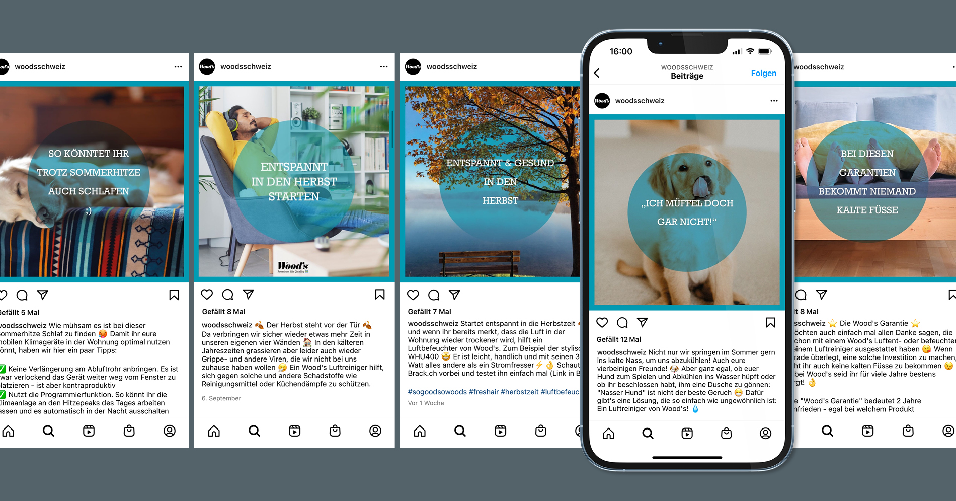 Dass gesunde Luft keine Selbstverständlichkeit ist, weiss man seit Corona. Raumluftgeräte waren gefragt wie nie – viele Hersteller buhlten um die Gunst des Publikums. Umso wichtiger war es, die Bedürfnisse des Zielpublikums exakt zu treffen. Die Kommunikationsagentur Therefore stärkte den Brand Wood’s mit einem massgeschneiderten Social Media-Konzept, das zielgruppengenau auf den Schweizer Markt abgestimmt war.